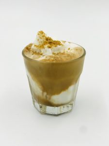 - Cà phê lắc tạo bọt và rót vào ly, đổ nhẹ nhàng hỗn hợp nói trên vào ly.